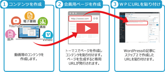 お手持ちのWordPressに当システム「トーマス」で登録した会員限定動画などのコンテンツを埋め込むことのできる機能です。