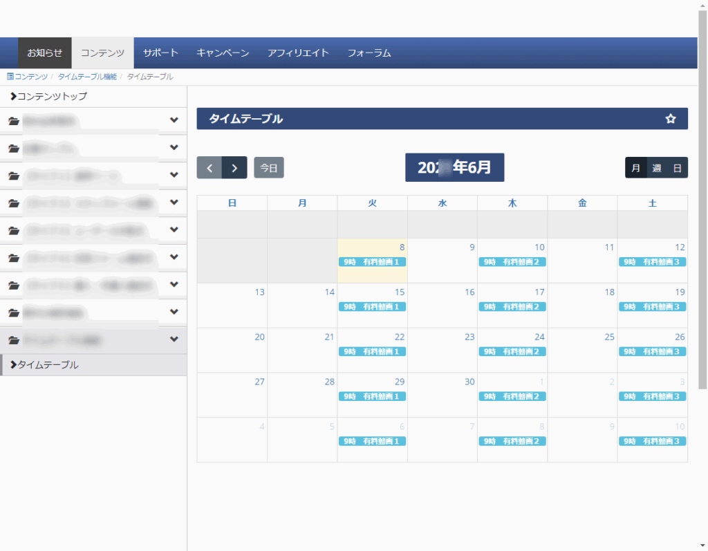カレンダーに登録された予定(イベント)は録画済みのレッスン動画やセミナー映像などを決まったスケジュール通りに自動公開・非公開されます。