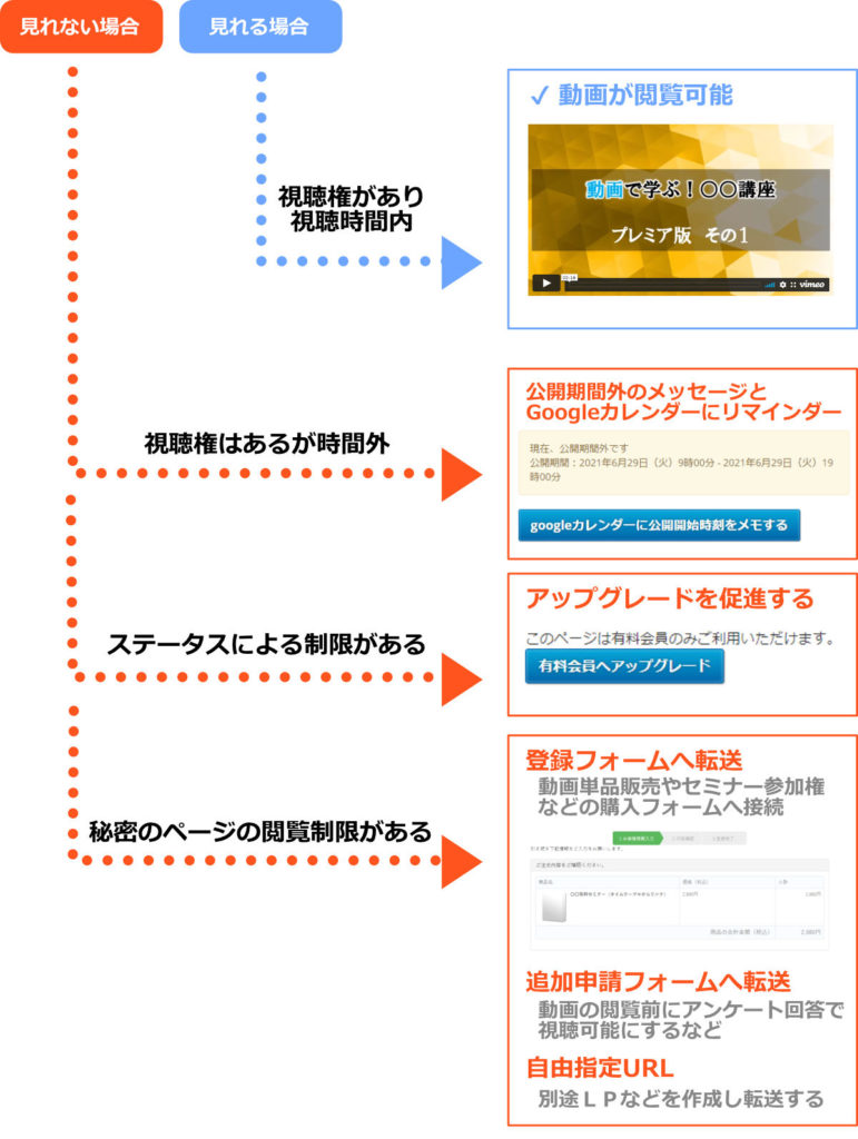 - ステータスによる制限がある場合 → アップグレードを促すページへリンク