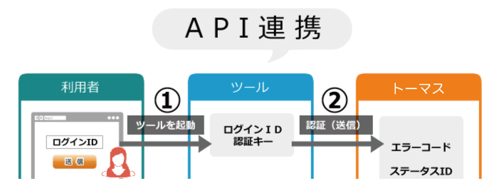- ツールで保持しているどんめるのログインIDと認証キーで認証します。